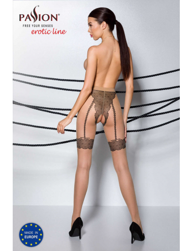 La marque Passion Lingerie vient lance sa toute dernière collection de collants ultra sexy...A porter de jour comme de nuit, ces collants ont la particularité d'être ouverts à l'entrejambe. Un détail bien pratique pour laisser libre cours à vos fantasmes les plus coquins !Les collants beiges TIOPEN 016, conçus en fils 20 deniers, sont à la fois discrets et incroyablement sexy.Transparents, ils subliment vos jambes avec une pointe de sensualité qui fait toute la différence, grâce à ses lignes entourant les cuisses comme des jarretières.Élastiques la taille, ils permettent un maintien et un confort optimal. La pointe de pieds est renforcée pour garantir une haute résistance.Fabrication européenne. Composition : 93% polyamide, 7% élasthanne