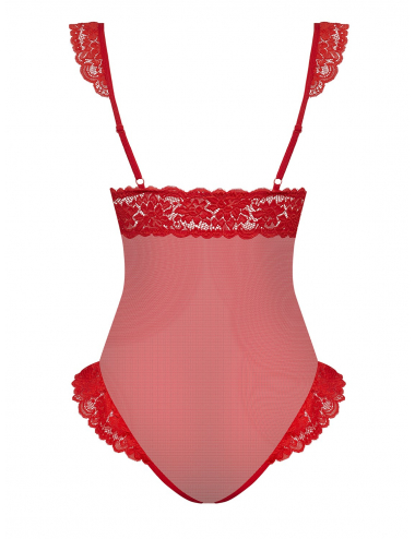 Découvrez la collection Obsessive 863, avec ce magnifique body rouge orné de froufrous et de dentelle. Jouant sur la transparence, ce body ultra sexy dévoile la sensualité de vos courbes, pour le plus grand plaisir de votre partenaire. Bretelles réglables pour un ajustement parfait et un confort optimal. Composition : 94% polyamide, 6% élasthanne