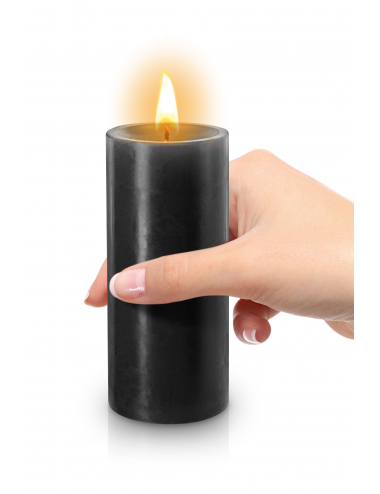 Une bougie noire basse température créée spécialement pour que la paraffine qui coulera sur la peau ne soit pas "brûlante".