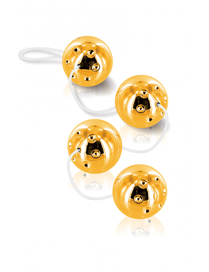 4 Boules de Geisha pour encore plus de sensations. Elles s'insèrent dans le vagin. Lorsque vous bougez, les billes internes remuent à la façon d'un rapport sexuel. Idéal pour un plaisir permanent en toute discrétion. Cordon de retrait.