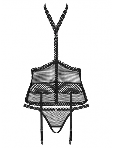 Corset audacieux avec string Vous rêvez d'un peu de piquant et de débauche ? Si vous voulez vous sentir comme une déesse de l'enfer et vous offrir, à vous et à votre beau, beaucoup de sensations merveilleuses, nous avons un corset fantastique pour vous ! Autorisez-vous un peu (ou peut-être plus qu'un peu) de tissages tricotés et de noir tentant. Cette combinaison remarquable fera que le corset Strapelie vous ira parfaitement ! Découvrez plus de détails : - corset et string uniques dans une coupe sexy et étroite - string avec entrejambe ouvert ? un élément qui ajoute du piquant - le tour de cou réglable va jusqu'au buste - tissage épais imitant une ceinture ? mise en valeur idéale de la taille - jarretelles réglables ? possibilité d'essayage - pendentif en argent pour ajouter du charme - finition des bords décoratifs ? ajoute du caractère - des mailles noires audacieusement transperentes-matière délicate, élastique et près du corps (90% polyamide, 10% élasthanne)