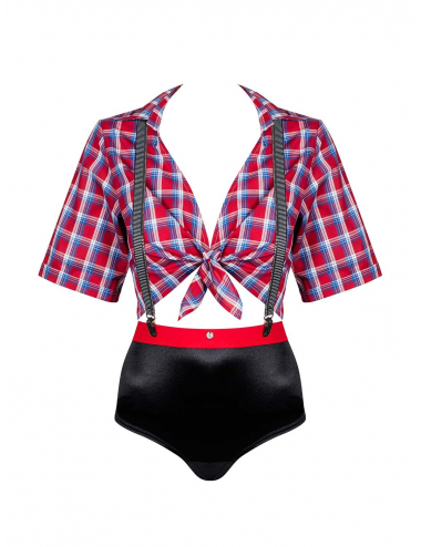 Do you want his heart to beat a little faster? We remembered that you love creative costumes, and at the same time love to look sexy with a hint of spice. Interested? Imagine that your man comes home from work, and you?re waiting for him in an incredibly attractive Worker Girl costume... Oh, yes ? there is still a night shift awaiting for him. This time, however, you?ll be working together;) Check the details:- a beautiful costume consisting of a plaid shirt and panties- black and white suspenders at the back sewn into the panties and fastened with clips at the front- shirt tied under the bust further emphasizes the breasts- black panties decorated with a red strap ? a real tempting combination- high waist- delicate and skin-friendly materials Composition: 90% polyamide, 10% elastane