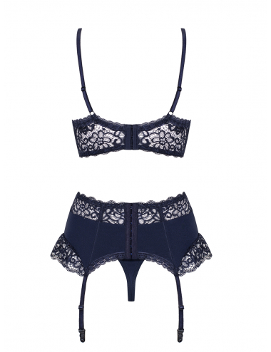 Extrêmement féminin, l'ensemble Drimera mettra en valeur vos courbes "accentuées" et pulpeuses, avec ses bonnets rembourrés pour le soutient, ses porte-jarretelles finition dentelle et son string assorti. Sa couleur bleu foncé intense et subtile ajoutera du rêve dans vos nuits.Plus de détails : Bonnets rembourrés avec armatures Bretelles ajustablesMatières Multistretch délicates et élastiques Composition : 85% polyamide, 15% élasthanne