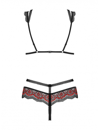 Design sexy avec le soutien-gorge et le string ouvert pour une ambiance des plus chaudes.Détails : incroyablement séduisant bretelles croisées au-dessus de la poitrinebretelles réglables fermeture réglable au dos ajustement parfait tissu délicat et élastiqueComposition : 90% polyamide, 10% élasthanne