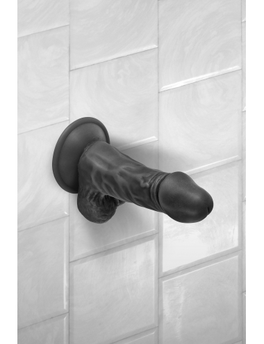 Un gode réaliste noir de taille coquine et d'un toucher étonnant.