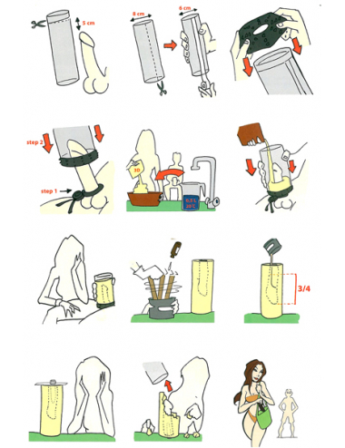 Contient : 1 tube, 2 sachets de gel, 1 pot de silicone liquide 212ml, 1 flacon de durcisseur 6ml, 1 agitateur en bois, 1 anneau d'érection, 1 joint extensible, une fiche d'instruction détaillée avec croquis, 1 gant plastique. Gel pour 2 moulages.