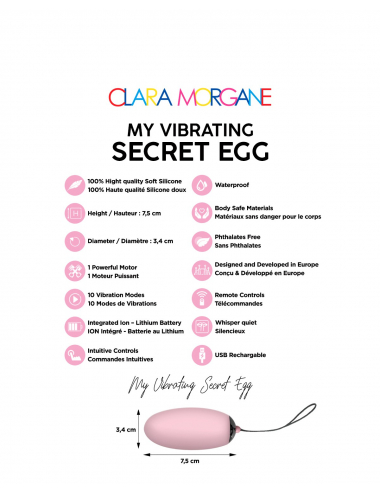 Découvrez les oeufs nouvelle génération de la marque Clara Morgane. En plus de leurs designs innovants, ces petits bijoux sont rechargeables à l'aide d'un câble USB.Le secret egg s'utilise partout : Restaurants, musées, salles de spectacle, cinémas : foncez et vibrez !Alors, allez-vous ajouter du piment à caractère extrême dans vos sorties ? Hauteur : 7,5 cmPoids avec emballage : 165 gMatière : ABS / SiliconePour : Femme/ CoupleUsage : VaginalHealth : sans phtalatesDiamètre : 3,4 cmVibrant : OuiFonctions : 10 modes de vibrationBatterie : Rechargeable USBAlimentation fournie : ouiMoteurs : 1Modes vibration/utilisation : 10Waterproof : WaterproofType de batterie : Batterie Lithuim intégréePrix de vente conseillé : 69,99
