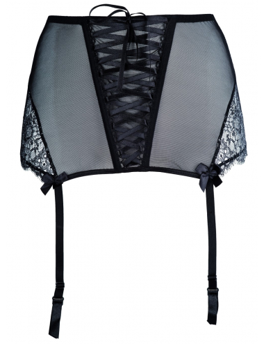 Splendide porte-jarretelles serre-taille de la collection Charme de Provence et nommé Rhone. Ce porte-jarretelles noir de la marque de luxe Axami est de tulle avec dentelle sur les côtés accompagnée de broderie argentée. Un laçage sur l'avant façon corset pour ajuster parfaitement à votre taille ce porte-jarretelles qui se réglera également sur l'arrière avec des agrafes se portera lors de soirées tendresse comme au travail. Sa composition est de 93% Polyamide 6% Elasthanne 1% PolyesterAvec ce porte-jarretelles Rhone, il est conseillé de porter le soutien-gorge, la culotte ou le string de la même collection.