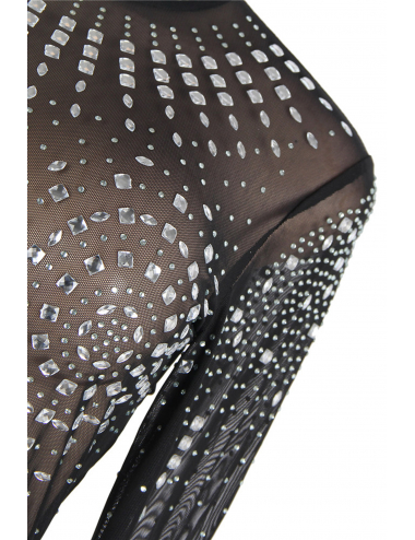 Avec son tissu très doux, cette robe sexy noire sera parfaite pour toutes soirées mais aussi à celles des réveillons grâce à sa décoration complète de strass de différentes tailles formera de jolis motifs sur l'avant, le cou et les manches.