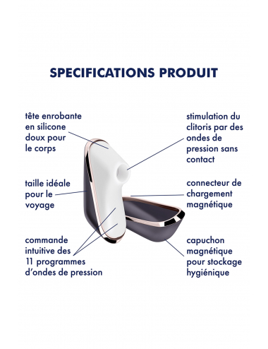 Son utilisation vous permet de basculer facilement entre les intensités fortes et douces pour vous procurez un maximum de plaisir avec sa stimulation par ondes pulsées sans contact. Son moteur est à la fois puissant et silencieux permet une jouissance très discrète lors de vos déplacements. La stimulation sous leau provoquant des sensations extraordinaires, le Satisfyer Pro Traveler peut s'utiliser dans votre baignoire.