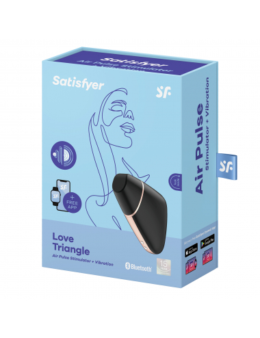Le Love Triangle de Satisfyer combine la technologie à air pulsé « Air-Pulse » avec des vibrations profondes et une tête en silicone lisse. Son capuchon pratique garantit un rangement hygiénique et discret à tout moment, même en déplacement. Le Satisfyer Love Triangle : Stylé, moderne et orgasmiqueLe Satisfyer Love Triangle est un stimulateur clitoridien très maniable au design élégant, qui enserre voluptueusement le clitoris grâce à son embout d?application ultra doux et vous propulse vers des sommets insoupçonnés grâce à sa combinaison d?ondes de pression et de vibrations.Vous serez totalement libre de choisir où et comment vous souhaitez consommer votre plaisir, car ce petit bijou est étanche (IPX7) et vous accompagnera volontiers sous l?eau. Le silicone délicat est anti-adhérent et peut être facilement nettoyé après l?utilisation avec de l?eau tiède, du savon et un désinfectant spécifique. Garantie 15 ans2 moteurs super puissantsVariété infinie de programmes grâce à l'applicationToutes les fonctions de l?application peuvent être utilisées gratuitement, y compris les mises à jour régulièresUtilisation également possible sans applicationSilicone biocompatibleEtanche à l'eau (IPX7)Nettoyage facileMode silencieuxBatterie rechargeableCâble de recharge USB inclus Comment fonctionne l?App Satisfyer Connect ?Avec ce stimulateur, vous pouvez non seulement choisir parmi des combinaisons d?intensité prédéfinies d?ondes de pression et de vibrations, mais aussi créer vos propres combinaisons grâce à une App de commande innovante. Il suffit de télécharger l'App Satisfyer Connect gratuite sur un appareil Android ou iOS et de le connecter à votre smartphone, tablette ou Apple Watch via Bluetooth et éventuellement via Internet.Vous pourrez créer des vibrations personnalisées et les partager avec d?autres utilisateurs du monde entier.Goûtez aux vibrations de votre playlist préférée Spotify directement sur votre Satisfyer Love Triangle : il n'y a pas de limites à la créativité avec cette App de télécommande. Vous pourrez également laisser votre partenaire prendre le contrôle de votre Satisfyer ou encore un autre utilisateur avec la fonction de chat vidéo de l?application.Découvrez et vivez des aventures inimaginables et embarquez-vous dans les nouveaux univers numériques de l?App Satisfyer Connect. Bien entendu, l?App est conforme au RGPD et répond aux directives européennes en matière de protection des données. Vous pourrez vous épanouir en toute liberté et amener votre vie amoureuse à un niveau inédit. Alors, qu'attendez-vous ? Des heures exaltantes de plaisir vous attendent...