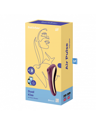 Informations produit "Dual Kiss" Le Dual Kiss séduit grâce à la combinaison d?ondes de pression éprouvées, d?un stick vibrant pouvant être inséré et la possibilité de commande via l?App. L?accessoire est réalisé en silicone doux et agréable pour la peau et est étanche. Fabriqué en silicone super doux, doux pour la peau et de qualité médicale, lisse au toucher et extrêmement hygiénique Stimulation simultanée du clitoris par ondes de pression et vibrations Grâce à sa finition étanche (IPX7), ce sextoy peut être utilisé en toute sécuritédans l'eau et est facile à nettoyer. Garantie de 15 ansStimulation clitoridienne par des ondes de pression et stimulation du point G par des vibrations2 moteurs contrôlables séparémentSilicone biocompatibleÉtanche à l?eau (IPX7)11 programmes d?ondes vibratoires + 10 programmes de vibrationMode silencieuxBatterie lithium-ion rechargeableCâble de recharge magnétique USB inclusNettoyage facile Satisfyer Dual Kiss : vibromasseur à ondes de pression utilisable des deux côtés Le Satisfyer Dual Kiss peut t?offrir beaucoup de choses : le vibromasseur à ondes de pression en silicone doux pour le corps peut également être utilisé comme stimulateur du point G et satisfait tous tes désirs. Laisse la tête d?application ronde te chouchouter le clitoris avec ses ondes de pression pulsées sensuelles ou profite de massages stimulants de ton point G grâce à la tige vibrante légèrement incurvée. Avec son design élégant et ses détails en métal, il est aussi un bel objet déco ! Plaisirs multiples avec le Satisfyer Dual Kiss Mais il y a encore mieux : le Dual Kiss est étanche (IPX7) et est donc le compagnon de jeu idéal pour des bains prolongés et des séances de douches torrides ; il est également facile à nettoyer. Lorsqu?il s?essouffle, ses batteries intégrées peuvent être rechargées grâce au câble de chargement USB inclus.