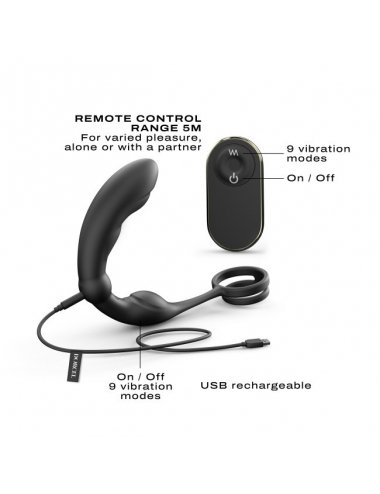 P-Ring transforme vos moments intimes en ve?ritable tourbillon d?extase. Stimulateur prostatique et double cockring, ce sextoy en silicone doux a plus d?un tour dans sa poche. Il saura vous combler de plaisir gra?ce a? une stimulation inte?grale de l?anus, de la prostate, du pe?rine?e, des testicules et du pe?nis. Que demander de plus ?Le double cockring assure une e?rection renforce?e et une e?jaculation retarde?e. La forme incurve?e et la te?te profile?e permettent une utilisation ultra confortable. Le design texture? et bombe? stimule les zones les plus e?roge?nes de votre corps et fait varier l?intensite? des sensations.La te?le?commande est un petit pas de plus vers des e?bats enflamme?s, solo ou votre moitie?. Alors, e?tes vous pre?t a? atteindre les e?toiles ? AVANTAGES Multi-stimulation : prostate, pe?nis, pe?rine?e, et testiculesForme bombe?e pour une stimulation pre?cise sur la prostateTe?le?commande pour un meilleur confort et faire varier les plaisirsDeux moteurs pour des stimulations diffuses et homoge?nesDouble cockring ultra flexible pour des e?rections renforce?es et prolonge?es9 modes de vibration INFORMATIONS TECHNIQUES Dimension : 18,2 x Ø3,7 x Ø3,2 cm / 7.17 x 1.46 x 1.26 poucesLongueur inse?rable : 9 cm / 3.54 poucesBatterie lithiumTemps de recharge : 30 minsAutonomie : 30 ? 65 minsPorte?e te?le?commande : 5 mNiveau sonore : 45 dbUSB Rechargeable (ca?ble fourni)Splashproof
