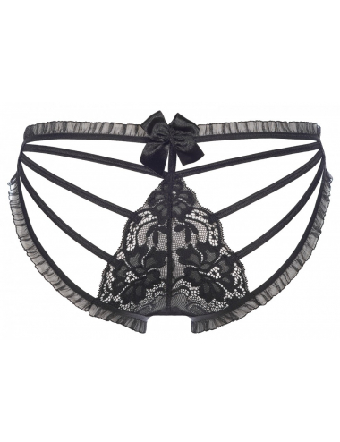 Vous aimez l'originalité, vous allez être comblés. Avec cette culotte noire, la marque Axami fait un grand pas vers le charme. Cette culotte noire transparente sur l'avant est complètement ajourée derrière. La mode des ornements se retrouve complètement sur les fesses. Une mélange de tulle et de fine dentelle noirs construisent ce modèle d'exception.