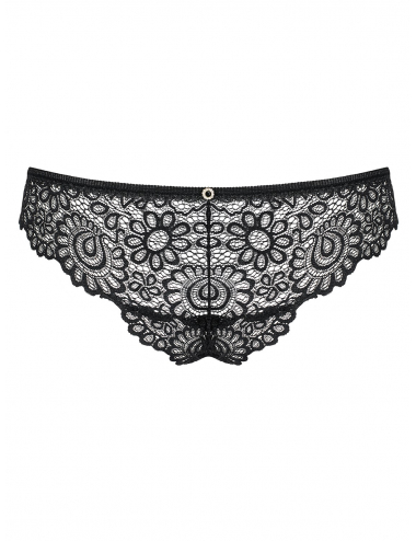 Ce tanga lui réservera une jolie surprise, juste coquin et élégant devant il suffira que vous vous retourniez pour faire grimper la température d?un coup et c?est bien normal, vous affichez clairement vos intentions !Détails produits :Une face sage une face épicéeEntrejambe ouverteGalons stylisés et élastiques à l?arrièreDentelle noire bords découpésTissus doux, agréables et super élastiques, ajustement parfait.Composition : 90% polyamide, 10% élasthanne