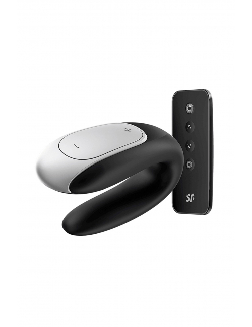 Ce stimulateur de couple noir, de la célèbre marque de sextoys Satisfyer, se gère à l'aide d'une télécommande radio pour piloter les 10 programmes qui sont en mémoire dans les deux moteurs très puissants.