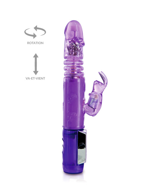 Voici le Rabbit le plus perfectionné et le plus complet de sa catégorie. Ce vibromasseur Rabbit est waterproof et sa fonction va-et-vient qui simule à la perfection les assauts de votre partenaire sont ses atouts majeurs. La partie pénétrante, recouverte dune matière très douce et souple, est composée dune tête hyper réaliste et de 3 rangées de perles en métal. Lensemble est animé par un axe rotatif à double sens pour une stimulation vaginale optimale. Les oreilles du lapin stimulent le clitoris grâce à un uf vibrant très puissant. Un vibromasseur Rabbit très complet.